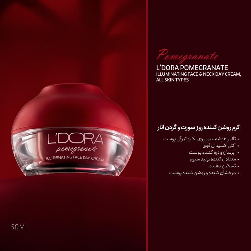 کرم روشن کننده روز صورت و گردن انار مناسب انواع پوست لدورا، 50 میلی لیتر